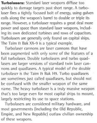 А вот вырезка из сурсбука Starships of the Galaxy (Без таблиц и тому подобного Вообще, сурс предназначен для ролевой постройки кораблей и тому подобных интересных вещей.