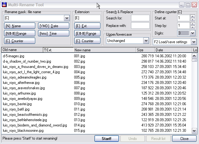 Обьясняю сетуёвину , имеется цифровой фотик , все фотки скидываются на винт (потом на СД), проблеммы начинаются когда их надо сбросить так как файлы все имеют одинаковые имена с раннее сброшеными , пихать в разные папки нехочу , вроде слышал что есть маленькая программа каторая переименовывает пачки файлов , мож кто знает такую ?