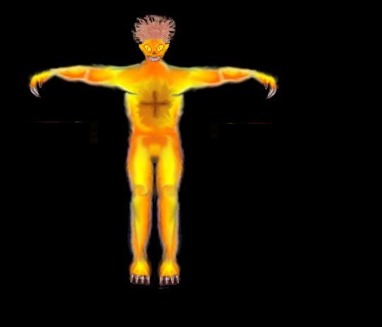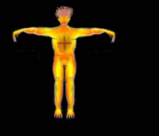 Автор: GL@Z 1. Подробное описание внешнего вида монстра. "МИГер" или "подМИГивающий" выглядит почти как обычный человек. Рост его примерно 189 см. Кожа ярко оранжевого цвета, раза в три толще, чем человеческая. Покрыта порами размером 0,5 мм. Легкие огненного человека приспособились так, что теперь они перерабатывают кислород в газ. Через них поступает наоружу горючий газ, который легко воспламеняется. Температура кожи этого существа очень высокая. Даже за метр от него веет жаром. Из-за таких температур газ выходит поджигаясь. Так же на лицевых сторонах ладоней рук находится по одной крупной поре. Глаза необычно крупного размера, нечеловеческой формы. По внутреннему строению похожи на кошачие, но более устойчивые к яркому свету. Рот большой, с мелкими, но острыми клыками . Клыков восемь штук: четыре сверху и четыре снизу (вместо резцов). Резцы ему не нужны, так как у него очень сильные зубы для перетерания пищи. Язык у него короткий и заострённый. Уши тоже заостренны в верху. На кистях рук расположено четыре пальца с огромными когтями. На ногах очень сильно развиты мышцы. Благодаря им "МИГер" может быстро бегать и прыгать на достаточно большие расстояния. "МИГеры" не имеет половых органов, а следовательно не различаются по полу. На брюшной части имеется крестообразный разрез для размножения. Волосы рыжего цвета. "МИГера" хорошо заметно ночью, когда он светится. У него так же хороший слух и зрение. Может улавливать тепло любого обьекта за 100 м. 2. Подробное описание способа передвижения монстра. "МИГер" передвигается так же как и обыкновенный человек. В "прогулочном темпе" "МИГер" развивает скорость 7-8 км/ч. Когда же он начинает охотится то его скорость составляет 12-13 км/ч. Так же "МИГер" передвигается прыжками. У него сильно развитый мозжечок, поэтому его движения тщательно продуманы и точны в исполнении. 3. Подробная информация о повадках создания, местах его обитания. "МИГер" обитает обычно в местах где преобладает высокая температура воздуха. Живёт он примерно 8 дней. Сам по себе "МИГер" стадное животное. Но отрядами ходит редко. Понимает, что другой "МИГер" его собрат. Разговаривают "МИГер" с помощью жара, исходящего из их тел. Обычно на пути сталкера они встречаются по одному человеку, иногда и вместе с молодым "МИГером". Встретить их в большом количестве можно только там, где очень жарко (большие пожары, доменные печи и т.д.) или очень большой уровень радиации. Возле "горячих" мест "МИГеры" собираются, чтобы спать и размножаться. Чтобы заснуть "МИГеру" ему надо "отключить" поддержку подогревания кожи, но тогда он может умереть, поэтому спит он только возле места, где концентрируется очень высокая температура воздуха. Размножаются "МИГеры" делением. Когда приходит время, "МИГер" стремится попасть в "горячие" места - Очаг, чтобы там начать деление. Расходуя на "ребёнка" большое количество тепла, сам огненный человек остывает, поэтому он расмножается там же, где и спит. "Новоразожженый" появляется из брюшного разреза огненного человека и вырастает примерно за сутки. "МИГер" может размножаться раз в 4 дня. Стадии роста "МИГера": Первые 6 ч. - рост "МИГера", появление конечностей. Маленький "МИГер" не всостоянии сам себя "прогреть", поэтому лежит в жарком месте. 7-12 ч. - появление огранов прогрева, "МИГер" начинает ходить не очень поворотливо и плавно, пробует первые опыты 