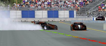 Лидеры замедляются и #911 и #69 синхронно шугаются влево, а #66 - вправо ![]() |