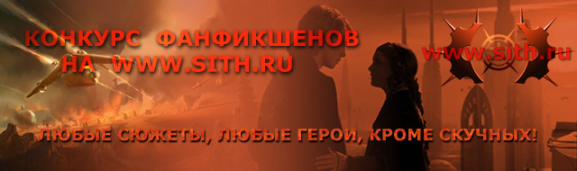![]() Сит.ру объявляет конкурс прозаического творчества по Вселенной ЗВ 1. Конкурс проводится с 20 сентября по 20 декабря, итоги будут подведены на Рожденственских каникулах. Прислать свою работу можно с 20 сентября до 20 декабря включительно. 2. После 20 декабря все работы, допущенные жюри к конкурсу, будут опубликованы на сайте в разделе Конкурс без указания автора. Авторство будет указано после подведения итогов конкурса. 3. На конкурс принимаются работы, соответствующие условиям конкурса. 4. Уведомление о том, что работа принята или не принята на конкурс, будет выслано в течение недели. 5. Победителя определяет жюри. 6. Авторам работ, занявших первое, второе и третье место, будут вручены призы. О призах будет сообщено дополнительно. условия для авторов можно посмотреть и обсудить здесь http://forum.sith.ru/index.php?showtopic=306