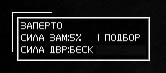 У каждой двери была два параметра Прочность(сила) двери и Прочность(сила) замка. Прочность двери и замка выражались в процентах. Значение прочности "Беск." означало что дверь нельзя разрушить, ни сломать, ни взорвать. Тоже самое и для замка. С таким значением его нельзя взломать. На скрине прочность замка равна 5 % и указано, что для его взлома требуется всего лишь один подбор отмычкой. Отмычки были одноразовые. При применении отмычки проценты уменьшались, пока не появлялась надпись "Открыто". |