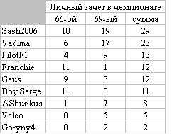 Здесь я представляю вам личный зачет (в командном смысла не вижу