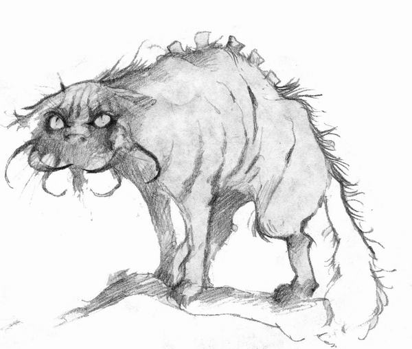 Автор: Херсонский ниндзя 1.Подробное описание внешнего вида монстра. С виду обыкновенный лесной кот, пушистым хвостиком и мохнатым тельцем, если не брать во внимание размеры, параметры которых не уступают немецкой овчарке и щупальца насекомого, растущие из верхней челюсти. Соседство двух разных органов не мешают друг другу в естественном приеме пищи, даже наоборот служат оборонительным и дополнительными в добыче съестного. Прекрасно видит в темноте. Ночной хищник. Имеет небольшой горб по которому вдоль позвоночника расположена дорожка крепких хребтов. Обладает ядовитой слюней, что дает ему преимущество перед более крупными организмами. Крепкие щупальца пропитаны парализующими маслами. 2.Подробное описание способа передвижения монстра. Все движения идентичны с кошачьими. 3.Подробная информация о повадках создания, местах его обитания. Место обитания Тибальта считается густая листва деревьев, луга, где он может понежиться на солнышке. 4.Подробная "легенда" монстра. Голодное животное не могло знать, что аппетитное насекомое имеет в себе доминирующий процент мутагена. Ядовитые пары, радиоактивный кислород, все является фактором изменений ДНК лесного обитателя. 5. Подробная информация о способах взаимодействия монстра с другими персонажами Зоны. Истребляет мелких грызунов, хотя в зоне таких единицы. Иногда в порыве паники бросается на представителей двуногих. Стычек старается избегать. 6.Подробная информация о боевой тактике монстра, о том, как он ведёт себя во время взаимопротивостояния с врагом. Если уж Тибальт решается на атаку, то нападает со спины, целясь в шею, голову. Ловко приседает и совершает длинные прыжки. Ему достаточно поранить обидчика, чтоб того парализовало, потом кот удаляется. Через некоторое время приводит сородичей для пышной трапезы. 7. Подробная информация о том, как бороться с монстром, о способах его победы и методах его отлова и уничтожения. Огонь. Шерсть кота не защищена от высоких температур. Пустить пулю в лоб. Можно усыпить. |