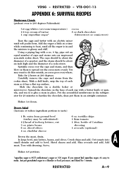 ![]() Давайте, приготовьте кто-нить ![]() ![]() PROPERTY OF VAULT-TEC $50.00 PENALTY FOR PRIVATE USE APPENDIX 7: "The Big One" Pancake 1/3 cup Butter 4 eggs 1 cup milk 1 cup flour In a blender whip eggs for 1 min. Gradually add milk and then flour while blender is on. After adding milk and flour continue blending for 30 seconds. Melt butter. Pour melted butter into souffle dish (or round high dish), then add mixture to dish. Bake at 425 degrees for 20-25 minutes (Until fluffy and golden brown & firm. Pancake will fall apart after being removed from the oven. Serve with fresh strawberries, powdered sugar, lemon, syrup, cinnamon, or anything you desire. Makes approximately 8 servings.
