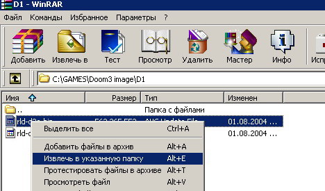 В программе добираешься до архива, жмакаешь правой кнопкой на нем (см. скрин), выбираешь "Извлеч в указ. папку" и всё. Разархивированый файл лежит в этой папке. (Не лишне проверять архивы на вирусы, а то всякое в сети лежит).