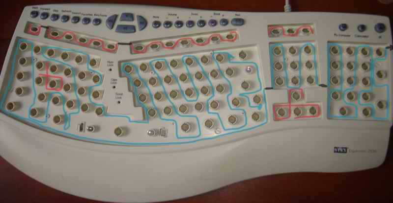 При прокладке шнура лучше избегать пересечений, иначе могут плохо нажиматься кнопки. Два таких места я уже вижу. Там проще можно проложить, без "перекрестков". Ну а итоговый кабель питания лучше выводить из корпуса в том же месте, где выходит клавиатурный шнур, тогда их можно будет скрепить вместе - меньше болтающихся проводов будет. А еще не плохо бы предусмотреть выключатель подсветки, в корпусе места наверняка много у задней стенки. Иначе придется нырять под стол (или куда там будет втыкаться модуль питания шнура), когда подсветка надоест. |