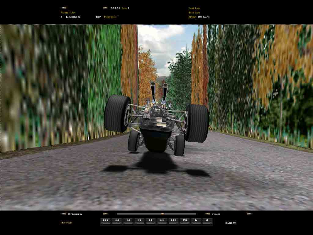 Поул никто не взял, кроме меня, ну да ладно. Страшно, любят у нас "жопить". Погнали. Жужжат сзади, ой как жужжат. Ладно, думаю, пропущу-ка Юрика Нахимовича, и сяду ему на хвост, нервы трепать. Юрик едет быстро, но я не отстаю, не вылетает. Хорошо, гонка длинная, буду ему на нервах дальше играть. Ближе, еще ближе... вот поворот, еще поворот, ближе... И как это получилось... не удержался, съехал на обочину в последнем повороте, и на скорости 120 м/ч въехал в рощицу. На другой день устроил себе утешительную гонку с ботами - 10 кругов - из 3.50.хх даже не вышел. нда. А в пятницу, а в пятницу - устроили мы Дандрод на 65 еще разок, Поехали Лич, Лук и я. 3 круга три раза. Первая гонка - песня. Лич, конечно, "принял" поболе нашего, оттого и "паровозик" получился нехилый, все три круга прошли с Личем колесо в колесо. Правда Лук отстал рано. Остальные две получились не очень. Мы стали наглеть в попытках обгона, рисковать в поворотах, ошибаться на торможениях, выбивать друг друга. Но и там было несколько острых и захватыващих моментов. Хорошая трасса Дандрод. Что бы ни говоили злые языки. Надо ее обязательно включить в следующий чемпионат 65. |