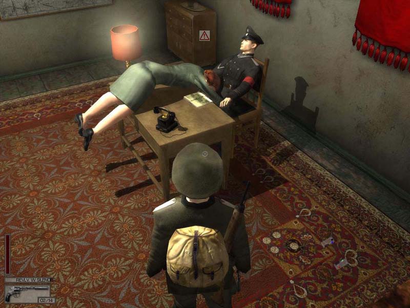 В уборной кокнул одного немца в фуражке, ну, как обычно, припрятал его в кабинке, закрыл дверцу и переоделся. Уже собирался выходить, как тут, как всегда не вовремя, приспичило ещё одному фрицу. Пришлось остаться и переждать. Он вошёл, выбрал другую кабинку, которая была пуста и, не закрываясь начал, так сказать, испражняться - но не в этом суть. Это лишь наполовину раскрывает его извращённую личину. В томительном ожидании решил немного размяться. Получилось неловко, и немец услышал. И далее Внимание! Он выходит из кабинки, подходит к моей и бесцеремонно распахивает дверцу! Странные нравы у этих немцев! Мало ли, какие звуки доносятся из соседней кабинки). |