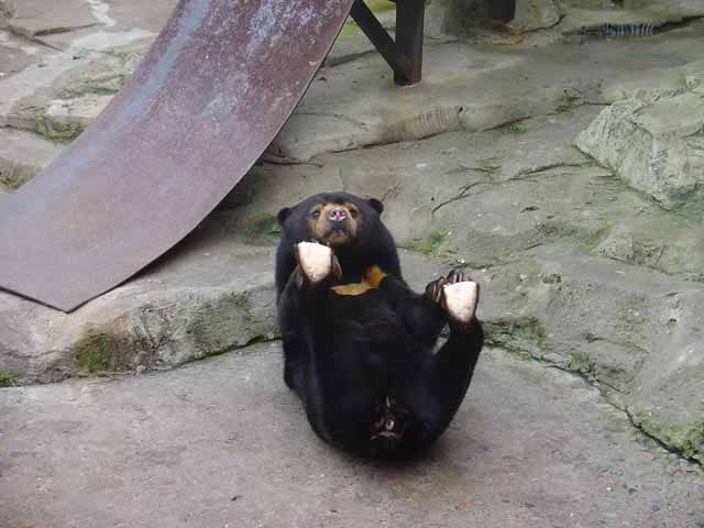 Солнечный медведь умеет забиратся по лестнице сам видел в зоопарке города Далянь(Китай). Смотрите
