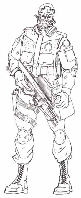 Лицо будет модифицировано в ближайшее время. Я сначала делал 4 лица. В итоге решил противогаз одеть. Но к моменту помещения на сайт, решил, что так дело не пойдет и наспех сделал набросок. Вот полное изображение (начальное).