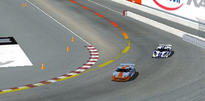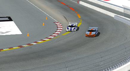 Но 43 перекрещивает и находится уже впереди, и толи нервишки сдали, толи соблазн уехать таки вперед оказался слишком велик и 43 сильнее чем надо нажимает на педаль газа и по следам от скользящих шин видно, что его заносит вправо, газ сбрасывается и разгоняться приходится уже за белой сплошной линией по надписям рекламы, 12 в очедной раз обходит 43, который начинает отставать и отрыв держится 4-6 секунд. |
