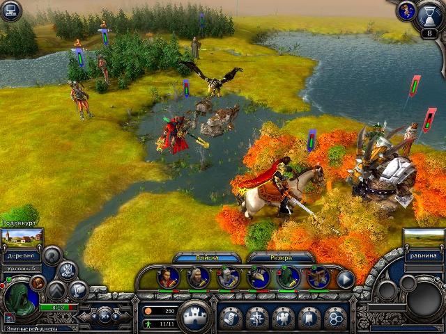 сюжет: Бреннок и Декстер рассказали Пфайлю о том, что в Версоне находится сильный артефакт, и не нужно допустить, чтобы он попал в руки Орды. Деррик решает принимает решение выступить в поход к Версону, на помощь королю Стефану. задание: основная цель всего одна – захватить замок Сантен, но будут и дополнительные задания: нам нужно будет убить шамана, а также освободить деревню Мене о орков. карта и описание миссии: опять нам предстоят очень непростые бои с орчьей напастью. Трудность еще будет и в том, что нужно разделить силы для того, чтобы посетить все любопытные места на карте и выполнить дополнительные задания. На карте имеется пещера троллей, где хранится артефакт, также нужно посетить церковь святого Тивериуса. По возможности можно заглянуть к алтарю, где прячется шаман. план действий: чтобы выполнить все дополнительные задания и захватить больше поселений, нам нужно разделить армию на целых четыре части. Самое мощное сопротивление врага находится возле деревни Мене, где находится мощный кавалерийский клин, которому лучше не попадаться на глаза. Примерно такое же кавалерийское войско находится и на юге карты между городом Латикс и деревней Шамбре, так что туда лучше не соваться. стартовый отряд: юго-восток: Деррик Пфайль (5ур.); юго-запад: Магистр Бреннок (3ур.), конные йомены (1ур.), королевская гвардия (1ур.), йомены-лучники (1ур.); северо-запад: Инквизитор Декстер (3ур.), пешие рыцари (1ур.), боевой орел (3ур.); юго-восток: вассальные рыцари (3ур.), йомены-лучники (1ур.), йомены-лучники (2ур.), арбалетчики (0ур), баллиста (3ур.), катапульта (1ур.). в резерве: рейнджеры (4ур.), вассальные рыцари (4ур.), королевская гвардия (4ур.), королевская гвардия (4ур.), рейнджеры (4ур.), рейнджеры (4ур.), арбалетчики (4ур.), конные йомены (3ур.), рейнджеры (2ур.), йомены (0ур.). Эту миссию без сомнений можно назвать самой нелинейной во всей игре, так как вариантов её прохождения не то что много, а даже очень много. В основном мы любую миссию начинаем с того, что высаживаем войска с какого-то края карты и постепенно движемся к заданной цели, и по пути посещаем заветные места с наградами. Здесь же мы высаживаемся в самом центре карты, а всякие «интересности» находятся по разные стороны… Эта карта одновременно и очень легкая и очень сложная. В зависимости от того, какие цели мы перед собой ставим. Не нужно пытаться полностью искоренить врага на карте – это врядли удастся, так что нужно ставить перед собой реальные цели. После предыдущей миссии мы получаем возможность усовершенствовать некоторые войска. В первую очередь нам нужно переделать простого орла в боевого, а также перевести всех алебардистов к звание королевской гвардии. Распределение артефактов в этой миссии особой роли не играет. Перед тем, как расстанавливать войска, следует определиться, кто и куда будет идти. Выполнить все дополнительные задания вполне реально, а также нужно еще и заботиться о том, чтобы наши войска получили как можно больше опыта. На юго-востоке (ориентируемся исключительно по карте миссии) меня интересовала исключительно пещера троллей, так как логично можно было предположить, что там находится либо артефакт, либо солидное количество золота. В эти земли я послал только одного Деррика, предварительно навешав на него оборонительные артефакты. На первом же ходу направляем его к деревне Шамбре и активир