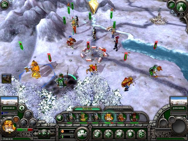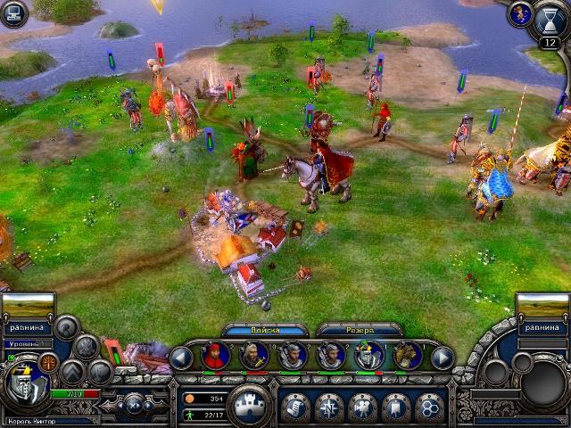 сюжет: Деррик Пфайль со своим войском прибыл в Версон. Там его повысили в звании до маршала и приказали любой ценой удерживать город. Но Декстер отменяет этот приказ и теперь Деррику нужно продержаться только до тех пор, когда из города эвакуируют всех беженцев. задание: основная цель одна – не дать врагам захватить Версон. По ходу миссии будут появляться дополнительные задания: расчистить дорогу; убить гоблина шамана; убить вождя берсерков; уничтожить осадные машины. карта и описание миссии: по сравнению с предыдущей, эта миссия будет потяжелее, так как вражеских войск много и они не самые слабые. Но ведь и задание у нас несложное – всего-то продержаться 15 ходов, и в целом сделать это будет совсем нетрудно. Артефактов на этой карте нет (все уже Орда разграбила, наверное), но по карте можно побегать в поисках золота во вражьих городах. план действий: воевать будем на два фронта – на юге у нас будет основная ударная группа, состоящая из кавалерии и с поддержкой лучников, на севере – вспомогательная армия, состоящая из пеших рыцарей и разведчиков. Особых тактических изысков здесь нет – просто истребляем все войска врага на карте, и не ждем, пока он сам к нам пожалует. стартовый отряд: на севере: элитные рейнджеры (2ур.), пешие рыцари (4ур.), пешие рыцари (1ур.), тяжелые арбалетчики (4ур.), конные йомены (4ур.), наемная кавалерия (4ур.); на юге: королевская гвардия (4ур.), Деррик Пфайль (9ур.), катапульта (4ур.), королевские лучники (2ур.), Инквизитор Декстер (9ур.), паладины (0ур.), тяжелые арбалетчики (2ур.), паладины (4ур.), Магистр Бреннок (8ур.), избранные рыцари (3ур.), королевские лучники (0ур.). в резерве: боевой орел (5ур.), орел (5ур.), баллиста (5ур.), боевой орел (4ур.), боевой орел (4ур.), элитные рейнджеры (5ур.), элитные рейнджеры (5ур.), вассальные рыцари (5ур.), рейнджеры (4ур.), рейнджеры (4ур.), королевская гвардия (4ур.), королевская гвардия (4ур.), королевские лучники (4ур.), королевские лучники (4ур.), йомены (0ур.), элитные рейнджеры (0ур.). Эта миссия проходится двумя способами. Один путь легкий, второй усложненный. Я думаю, не стоит объяснять, по каком пути пойдем мы? Легкий путь состоит в том, чтобы просто держать оборону все эти 15 ходов, но при этом раскладе мы наврядли сможет искоренить всех орков на карте и, как следствие этого, получим меньше опыта. Второй путь заключается в тактике «лучшая оборона – это нападение», к этой стратегии мы уже привыкли и вновь ею же и воспользуемся. Основное вражеское сопротивление будет на юге, туда мы и ставим как можно больше кавалерии, а также лучников для подавления авиации. На севере нам будут противостоять в основном разведывательные отряды (наездники на гиенах, лучники, гоблинская пехота), а значит, туда засылаем двух «танков» (пешие рыцари) и им в поддержку конных разведчиков, рейнджера и арбалетчика. Несколько ходов спустя, для более эффективного подавления вражеской пехоты, я перекинул на север Деррика Пфайля. На первых ходах нашей основной группой нужно истребить небольшие группировки гоблинов на равнине, а также прорваться к крепости Ле Венло, возле которой ошивается много орчьей кавалерии. С этими всадниками лучше всего бороться при помощи Деррика: предварительно накладываем на него «щит архимага», а также «контратаку таранным ударом». В таком случае наш герой (уже 10-го уровня) будет ответным ударом убивать весь отряд противника! П
