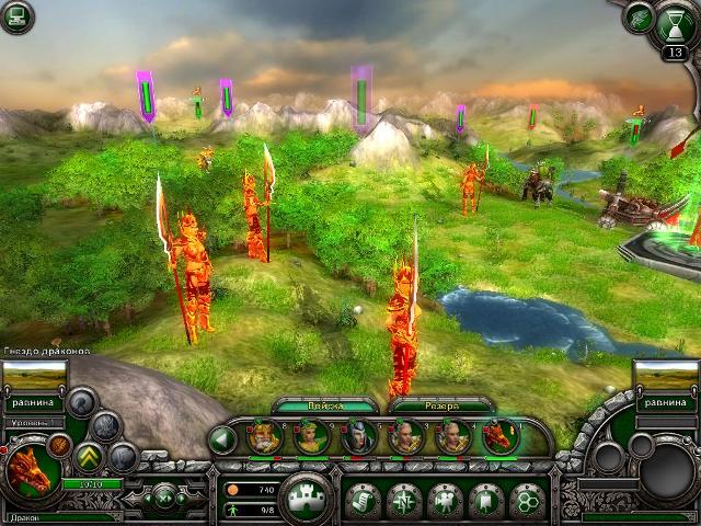 сюжет: при помощи магического зрения Тейя узнала, что Версон захвачен орками, а люди сражаются с Ордой возле стен Силента. Они вместе с Дварнроком решают, что нужно придти на помощь людям и объединить усилия против борьбы с одержимым Глендерином, но для этого им нужно пробраться через огромные орчьи полчища, штурмующие Вольный город. задание: оно всего одно – прорваться к армии людей, к целевой клетке на карте с отметкой место силы. Но наш путь преграждает внушительная армия орков. карта и описание миссии: нельзя эту миссию назвать очень трудной – орков на карте хоть и много, но наши войска и сильнее, и опытнее. На карте мы не найдем ни одного артефакта, да и поселений тоже немного, так что мы можем не отвлекаться на поиски потайных мест. план действий: мы будем заниматься тем, чем раньше в эльфийской кампании не занимались вообще – тотальным давлением. Войска эльфов хоть и очень уязвимы, но благодаря пехоте гномов эта тактика вполне осуществима. Мы будем просто постепенно двигаться из севера на юг, уничтожая все орчьи отряды на нашем пути – времени на это у нас будет с избытком. стартовый отряд: мастера меча (4ур.), боевые гномы (5ур.), мобильная крепость (2ур.), дракон (0ур.), гномы арбалетчики (0ур.), Тейя (9ур.), дракон (1ур.), подгорные таны (2ур.), мастера лука (4ур.), мастера лука (3ур.), Дварнрок (8ур.), мастера меча (5ур.). На самом деле эта миссия очень нелинейная. Если у нас недостаточно золота, чтобы на эту миссию выставить двенадцать отрядов, то сражения с орками будут очень болезненные, и мы можем допустить потери или же не успеть добраться до целевой клетки в срок. В этом случае нам нужно искать обходные пути, чтобы выполнить основное задание и не попасть в поле зрения крупных формирований орков. Самый оптимальный обходной путь – двигаться на северо-восток и уничтожить там слабо защищенную армию врага, состоящую их разного рода гоблинов. Дальше нужно двигаться вдоль восточного края карты, таким образом, у нас есть шанс не попасться на глаза некоторым орчьим дивизиям. Двигаясь таким путем, мы придем к выжженному участку карты, и там нам придется повоевать с пехотой орков, но потом достигнуть целевой клетки уже будет нетрудно. Но этот путь – для тех, кто поленился хорошо прокачать свои отряды в предыдущих миссиях, и не посещал все места на карте. Если же мы в предыдущих миссиях справлялись «на отлично», то здесь у нас будет совсем иная тактика войны. У нас перед этой миссией должно быть десять отрядов, а на карту можно выставить двенадцать. Так как в этой миссии у врага будет много авиации, и у нас в распоряжении должно быть достаточно золота, то я докупил в свою армию еще одного дракона и гномов арбалетчиков (ради эксперимента). С такой армией нам не страшен любой орчий отряд – для стремительных атак у нас есть лучники и эльфийские клинки, а для обороны и сражениями с тяжело бронированной пехотой у нас есть гномы. Имея в своем распоряжении двенадцать отрядов, мы можем без особых проблем полностью истребить врага на карте, чем мы и займемся. Расстановка наших войск не имеет особого значения, разве что более медлительных гномов нужно наперед поставить. Уже на первом ходу мы должны подавить сопротивление двух небольших вражеских дивизий. Одна из них находится восточнее от места нашей высадки, и состоит из наездников на гиенах и птеродона, а вторая нахо