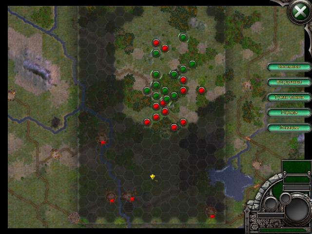 сюжет: мы заполучили оружие, способное вновь победить демона – меч Маркуса, но время по-прежнему не на нашей стороне. Глендерин возвел большую магическую крепость Сумган рядом с Версоном, и ему помогают обезумевшие эльфы и люди. Теперь героям нужно пробраться к Сумгану, чтобы помешать планам демона. задание: нужно привести Деррика Пфайля к Сумгану, чтобы помешать возвращению демона Фарраха в мир Иллис, как дополнительное задание нам нужно посетить Церковь Пресвятых Угодников. карта и описание миссии: тяжелая миссия, так как карта хоть и небольшая, но отрядов врага очень много, притом что многие из них полностью прокачанные. Наше преимущество в том, что у нас целых 5 героев, а у врага их нет. На карте нет мест, где могли бы храниться артефакты, да и поселения немногочисленные, хотя за захват Версона мы можем много золота получить. план действий: миссия нелинейная, но в любом случае придется столкнуться с превосходящими силами противника. Можно пойти или западным путем, или восточным, но в любом случае мы столкнемся с крупными группировками противника. Сумган охраняет нехилая группировка кавалерии, но благодаря массовым заклинаниям она убивается буквально за один ход. стартовый отряд: Деррик Пфайль (10ур.), Тейя (10ур.), Магистр Бреннок (10ур.), Инквизитор Декстер (10ур.), Дварнрок (10ур.), дракон (2ур.), элитные рейнджеры (4ур.), мобильная крепость (2ур.), элитные рейнджеры (4ур.), пешие рыцари (5ур.), дракон (1ур.), королевские лучники (4ур.), королевская гвардия (5ур.), паладины (4ур.), подгорные таны (3ур.). в резерве: боевой орел (5ур.), баллиста (5ур.), всадник на орле (5ур.), боевой орел (5ур.), боевой орел (5ур.), катапульта (4ур.), пешие рыцари (5ур.), боевые гномы (5ур.), мастера лука (5ур.), мастера лука (5ур.), наемная кавалерия (5ур.), королевская гвардия (5ур.), элитные рейнджеры (5ур.), элитные рейнджеры (5ур.), паладины (5ур.), королевские лучники (5ур.), тяжелые арбалетчики (5ур.), наемная кавалерия (5ур.), королевская гвардия (5ур.), избранные рыцари (5ур.), королевские лучники (5ур.), избранные рыцари (5ур.), мастера меча (5ур.), мастера меча (5ур.), элитные рейнджеры (4ур.), тяжелые арбалетчики (4ур.), избранные рыцари (2ур.), избранные рыцари (2ур.), элитные рейнджеры (2ур.), йомены (2ур.), королевские лучники (2ур.), королевские лучники (2ур.), элитные рейнджеры (2ур.), свита короля (1ур.), гномы арбалетчики (1ур.), тяжелые арбалетчики (1ур.), мастера меча (0ур.), мастера лука (0ур.), мастера меча (0ур.), тяжелые арбалетчики (0ур.). Одной из первых наших проблем в этой миссии будет выбор тех отрядов, которые будут приминать участие в данном задании. У меня в распоряжении перед этой миссией оказалось 55 отрядов (включая героев)! Мы уже не будем использовать те отряды, которые находятся на 0-2 уровне развития (кроме драконов), так что на это задание мы возьмем побольше крепких пехотных отрядов, а также тех, кто почти достиг предела своего развития. Начинаем мы миссию на севере карты, а целевая крепость находится на юге. Основное задание можно выполнить несколькими способами. Самый легкий – снарядить Деррика Пфайля всевозможными артефактами на увеличение очков движения и двигаться ним вдоль западного берега реки. На третьем ходу при помощи массовых заклинаний извести на нет охрану Сумгана и занять Дерриком нужную клетку. Этот путь хоть и самый легкий, но при этом наши войска не успеют прокачаться как следует. Так что мы будем де