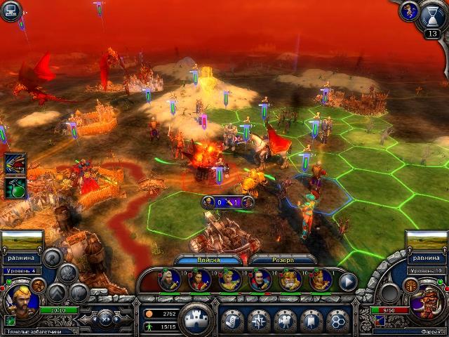 сюжет: наши войска прорвались к Сумгану, но было уже поздно – демон Фаррах обрел тело и теперь строит планы по захвату (или уничтожению) этого мира. У нас есть меч Маркуса и уверенность в своих силах, у демона – толстая шкура и армия «одержимых». Что победит – сегодня и узнаем… задание: ничего сверхъестественного – просто убить демона Фарраха, что не так то просто на самом деле. Можно также ослабить демона, выполнив задание на уничтожение кристаллов душ. карта и описание миссии: нечего сказать – последний бой на то он и последний, потому, что самый сложный. А сложность её будет даже не в полчищах демонических эльфов и людей, и не в толстокожести самого демона – Фаррах просто любит каждый ход восстанавливать свое здоровье, а это уже плохо. На карте нам искать нечего, да и незачем – при таком резерве у нас нет потребностей в золоте. план действий: прежде чем убивать демона, нам нужно приготовить плацдарм для того, где именно с ним сражаться. Тоесть, нужно истребить хотя бы часть вражеских войск, чтобы потом не отвлекаться на них. Предлагаю сначала взять штурмом Версон, а потом уничтожить кристаллы душ, а уже потом начинать охоту на Фарраха – если действовать правильно и стремительно – в золотой срок можно уложиться. стартовый отряд: в начале: огненные стражи (0ур.), дракон (3ур.), Дварнрок (10ур.), дракон (2ур.), Инквизитор Декстер (10ур.), Деррик Пфайль (10ур.), катапульта (4ур.), мастера лука (5ур.), мобильная крепость (3ур.), мастера лука (5ур.), Тейя (10ур.), Магистр Бреннок (10ур.); высаживаем после взятия Версона: пешие рыцари (5ур.), тяжелые арбалетчики (4ур.), тяжелые арбалетчики (5ур.). в резерве: это уже не имеет никакого значения – все действующие лица уже находятся на карте, для остальных отрядов игра окончена. Последний бой всегда легким не бывает, особенно когда нам противостоит демон, жаждущий власти и смерти всех живых в мире Иллис. Бой нам предстоит очень тяжелый, но, несмотря на всё, миссию реально пройти за «золотое» время и не потерять при этом ни одного отряда, хотя было много слухов о том, что такое сделать практически невозможно. Перед тем, как выставлять отряды на карту, следует подумать о том, как именно мы будет Фарраха изживать. Роль «хитобоев» у нас будут исполнять стрелки и герои с навыком «рубака», а также нам понадобится еще несколько крепких пехотных отрядов, чтобы сдерживать демона от атак и передвижений. Следует также сразу понять то, что нам требуется сделать в этом задании. Нам нужно только убить демона и ничего больше. А это значит, что нам совсем не обязательно вступать в бои с дивизиями «одержимых» демоном войск, и уничтожать только те, которые нам уж очень мешают. Наша зона высадки находится на севере карты, перед самим Сумганом и у нас есть два пути перемещения наших войск – на юго-восток к Версону, где засел нехилый гарнизон рыцарей Инферно и арбалетчиков, и второй на юго-запад через реку, где находятся големы и предатели мечей. Я бы все-таки рекомендовать сначала штурмовать город, так как при расстановке у нас проблема в том, что не все отряды помещаются на карте и нам нужно какое-нибудь поселение, чтобы высадить оставшиеся войска из резерва (на это задание можно выставить до 15 отрядов). Сразу после расстановки мы получаем дополнительное задание – разрушить кристаллы душ, из которых Фаррах черпает себе силу, но мы пока эти кристаллы