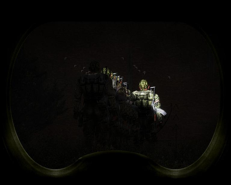 Вот ещё баг, который появляется временами возле перехода в зону Бара, причём проявляется только в дождливые ночи (в другое время не замечал) и появляется не всегда - фонарики переместились с головы на ноги и под землю