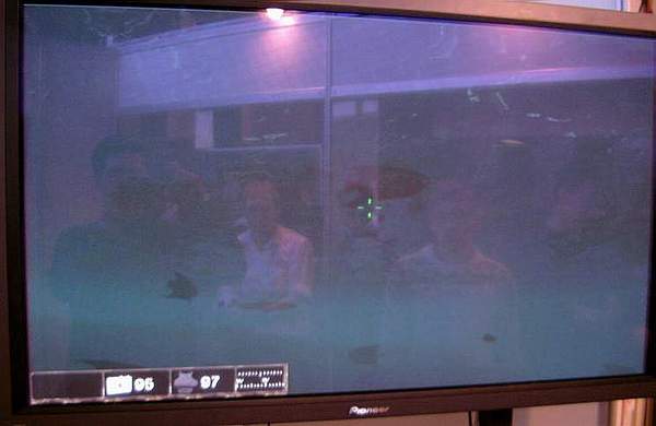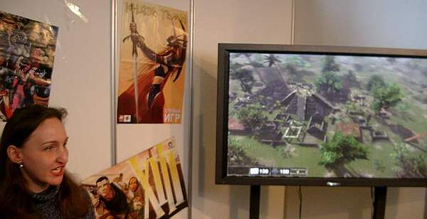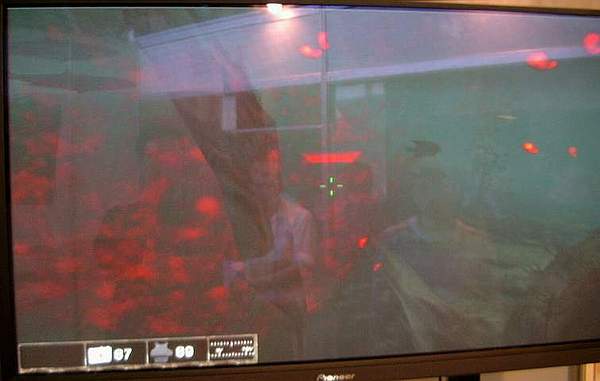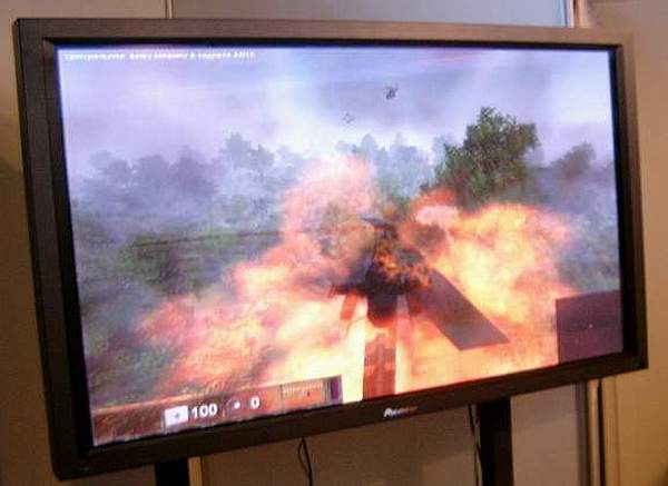 презентации, всеми нами ожидаемой игры Xenus. Хочу поблагодарить Embongo за отзывчивость, выдержку и внимание, которое она уделила буквально каждому, кто хотел получить информацию о проекте. Презентация была трудной во многих отношениях, но не смотря ни на что, получилась хорошо! P.s. На качество фотографий сильно не ругайтесь, из за большого объема исходного материала (1600*1200 каждый кадр), пришлось их сильно покромсать, добавить резкости за счет зернистости. Мало пока у меня опыта снимать в помещении без штатива и вспышки мыльницой. Кадр 1-ый, начало презентации. Обратите внимание на холмистую местность на заднем плане, тень от раскидистого дерева. Эти укрытия нам могут пригодится в игре.
