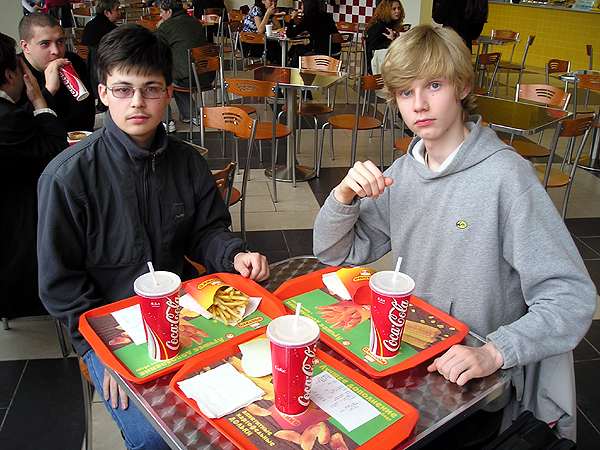 ![]() Эта обстановка настолько расслабила меня, что лезть за фотоаппаратом (с целью вновь чего-то там увековичивать) отпала... Посему, прошу извинений, но большим количеством фотоматериала порадовать не смогу. Удачных фоток получилось лишь 5 штук, кои я вам (не без удовольствия) и предствляю ![]() Фото №1, сделанное в самом начале камрадовки. Лейтенант Дей и DarthGeorgius. Независимо друг от друга, купили абсолютно одинаковые комплекты еды... такие же, как у раньше всех пришедшего меня ![]() |