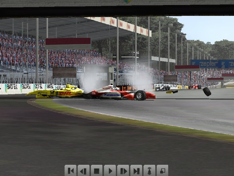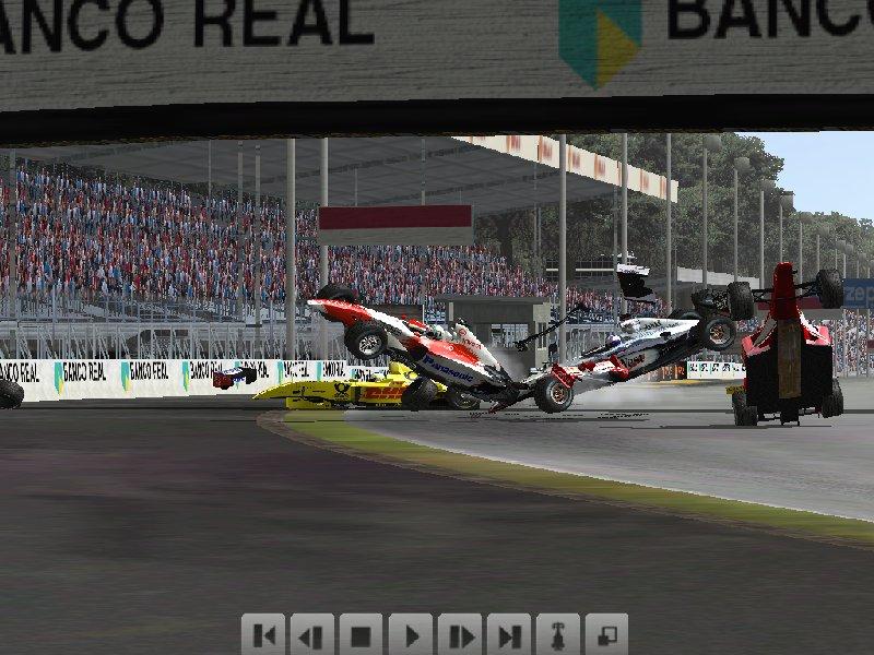 Ездил я как-то 50%-ную гонку в Бразилии, доезжаю последний круг (на 3-ем месте), после отмашки клетчатым флагом комп берет управление моим болидом в свои мозолистые кремниевые руки и..... тормозит почти до 0 перед первым же поворотом!!
