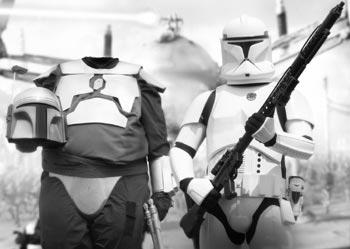 Продюсер - дройдеке: "Когда выйдешь на сцену, главное - не растеряйся. Для затравки расскажешь штурмовикам пару анекдотов. Затем расскажешь как ты стрелял в джедаев. Им это очень понравится. А под конец не забудь салют из всех орудий в честь Императора."