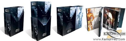 Будет два вида - для вайдскрина (под платину) и фулскрина (под золото). Отличаются они только оттенком. Картинка выполнена в стилистике первого классического постера к "Новой надежде". Внутри будут отдельные оформления для каждого диска в стиле ДВД первых двух эпизодов. Пока вывесили только картинки внешней коробки. Про внутренние только написали.