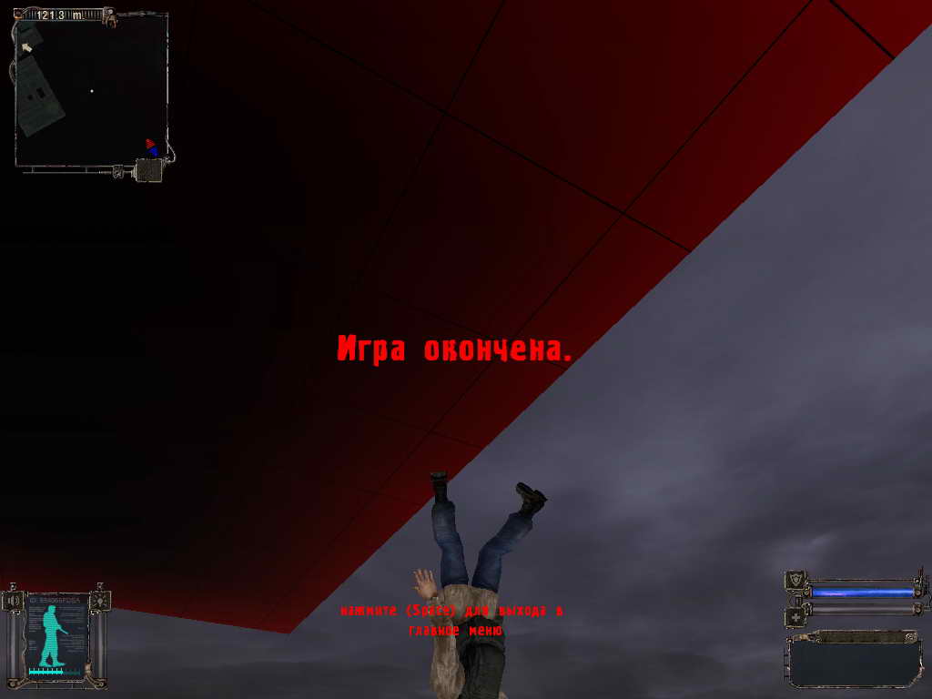 Залез в трубу сохранился и меня убили, при загрузке сейва наблюдается такая картина и вылезти оттуда уже нельзя. P.S. Еще бага не баг хз. В самом первом бункере у Сидоровича. Жму торговать если ему продать что-либо он говорит: "О отличный товар" и если у него покупать он говорит туже самую фразу. Last edited by ryMAHOug; 24-03-2007 at 13:09. |