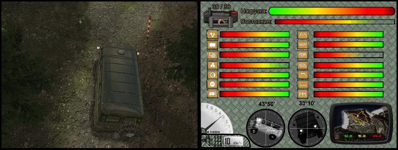 Ведь он может раскладывать картинку на два экрана. Вот что я подумал, если разложить картинку на одной стороне только машина, а на другой состояние запчастей, углы, на которых машина едет, скорость, карта. Фото УАЗа взято со скриншота предоставленным yA3oBop-ом Примерно так: Last edited by Русский_Дракон; 01-05-2008 at 01:34. |