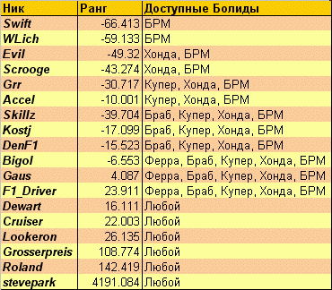Да и F1-Driver почему ограничивается в выборе машин?..