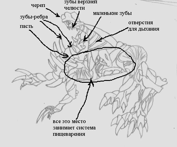 typhon Спасибо за арты! Второй арт с ноздрями и в цвете - просто супер! Так он выглядеть и должен!!! Basil Плагиата не вижу, но все равно спасибо. Со времени моего отсутствия еще не было особо много конструктивных вопросов, по этому обновлять историю еще нечем. Разве что пункт про его пристрастие к поеданию головного мозга существ будет включен, издавать зловоние он не будет, ожоговый налет будет защищать его от насекомых-паразитов, которые наровят отложить личинки в его мясе. P.S. К сожалению мне придется покинуть Москву на некоторое время, НО у меня будет доступ к компу там, куда я поеду, я буду продолжать появляться в форуме, и очень часто, так что дискуссию про своего и Ваших монстров поддерживать буду, причем очень активно. С уважением, G-offspring. |