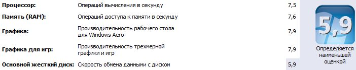 Что-то я не понял... У меня никакого SSD вообще нет, а индекс по основному диску 5,9.