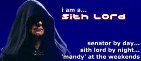 Занятный ответ вышел Вполне. ![]() А у меня все скромненько и предсказуемо: Sith lord. И рожица Палыча в капюшоне.. |