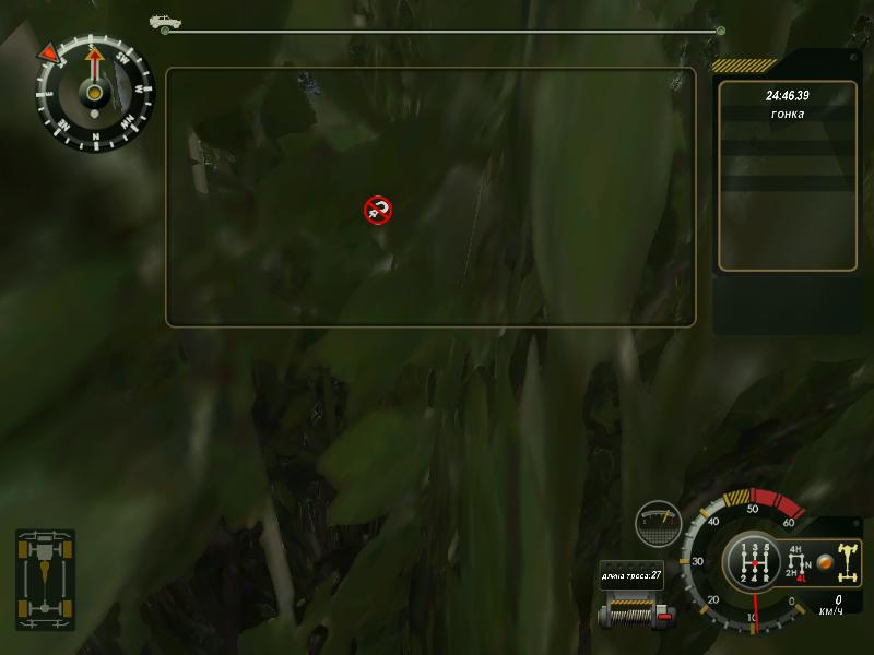Key One От места где три колеи сходятся, налево(если ехать от старта напрямик) идет одинокая колея, которая постоянно забирает вправо. На въезде в лес лужица, если в неё упасть, то при лебежении выходит такая картина: нихрена не видно из-за листвы + поиск места зацепа методом тыка тоже ни к чему не приводит.