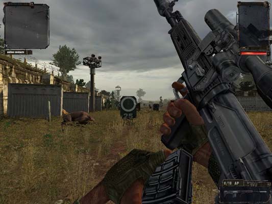 1. Гранату кидает как-то неумело и недалеко. 2. После взрыва свиньи разлетаются не сразу а с маленькой задержкой (мне так показалось) и не очень реалестично как-то. Глянул на интерфэйс рюкзака, вроде ниче так. Там еще пояс будет походу. Всем смотреть ролик! ЗЫ. да, и оптику вроде нормально реализовали, теперь я спокоен =) |