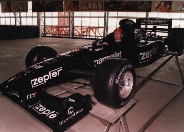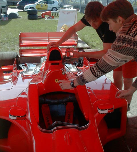 180 мм,вместо 200 и ввели вместо сликов 3 канавки(а оно надо) так вот "бедные" команды использовали для тестов старые шасси со старой раскраской или вообще черные,как в этом случае,но с новой или старой резиной(видел сам подобную фото в журнале с Микой Сало),однако ЦЕПТЕР для своей рекламы привез этот реальный болид,с гибридной раскраской,но все равно приятно прикоснуться к F1 ,хоть и 5 летней давности, теперь хоть знаю реальный вид из кокпита,покрутил руль, кстати обзорность вопреки заявлениям Попова по ТВ-прекрасная(лучше чем в моей Honda Accord Coupe),я залег туда замечательно,а я 190 ростом. Но в F1Simах такой вид реализовать непросто,так-как необходимо реализовать наклоны и повороты головы-взгляда(хотя бы на поворотах) такая попытка была в F1World GP в реале особо не высовыясь видно через переднюю подвеску см сорок переднего спойлера и дорогу(соответственно) не виден только сектор вперед (градусов 10 не более),руля не замечаешь,правда тесновато в локтях,и к зеркалам надо привыкать-маленькие-скорее не заднего,а бокового обзора(мешают задние колеса и спойлер).А так сидеть намного удобнее чем в обыдной сортивной машине,тем более у монитора. На реал F2002 посадка пониже,колеса ближе к кокпиту, зеркала больше(новые правила)может кто сидел поделитесь, Снято в Екатеринбурге |