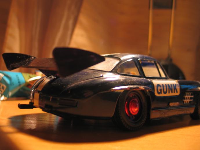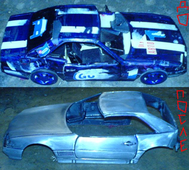 ну покрась его, сними бампера, заделай дырки эпоксидкой, калёсики поставь. Можно ещё из салона чтонить выкинуть.