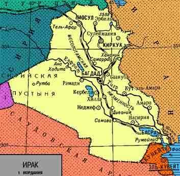 И вообще Вы что, феминист???? Да!!! И горжусь этим!!! (ps Я - он) Tie Pilot Весь терроризм идёт с востока! В том числе и из России. Эсеры очень любили это дело. All Подходите ко вской информации из Ирака критически. Прим. 1. Чтобы не путатся. На разных картах иракские города названы по разному. Поэтому иногда стоит отбросить представки Эн, Эс, Эль и т.п., что бы понять о чём речь. Пример другой карты ниже. Итак моё мение об информации. Врут ВСЕ!!! и амы, и хусениды, и русские. Но больше всех врут ИНТЕРНЕТ газеты. Например, одна газета в инфо ссылается на другую, а та на первую, причём обе газеты одного из-ва. Однако про Ирак конкретно, другая вообще. (Это dni.ru & irak.ru) 1) Ирак склонен преувеличивать потери гражданского населения подсчитанные, однако часть погибший невозможно уже подсчитать (сгорели полностью, трупы на необследованных территориях). Поэтому оценка граж.потерь в общем верна. 2) Ирак преуменьшает военный потери, также как коалиция. Но это понятно, мы в Чечне делаем тоже самое. Обычно реальные потери подтверждаются через несклько дней. 3) Боевые действия начались в четверг, но реально война началась в субботу (как и было в плане, по данным "ВашингтонПост" и "НЙ Таймс"). Поэтому реальные боевые потери (не считая катастроф вертолётов) оглашённые в понедельник будут ссответствоать концу субботы. 4) Теперь о тех.потерях. Официально командованием коалиции подтвержедена гибель а) Ам.вертолёта CH-47 (или 41) б) 2-х английский вертолётов SeaKing в) и-б "Торнадо" (Англ.) Теперь некоторая инфо с иракской стороны. а) показли обломки и-б США, обещали показать пилотов - но не показали. Обломков самолйтов США в Ираке много ещё с прошлой войны. б) показали охоту на реке на лётчиков, говорили что кого-то поймали, опять же кадров нет. На парашутаз необезательно могли спускатся летчики. в) англичане говорили о том что не знают где один из "Торнадо". Но дальше новость не пошла, то ли это был то самый сбитый Патриотом, то ли ещё какой-то. |