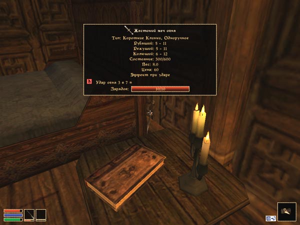 Предмет: Магический Короткий меч. Помоему с уроном огня. Воткнут за кроватью, справа, у изголовья.