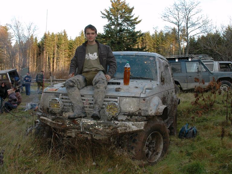 Невольные разведчики 3:25. Я и Кирилл (мой лучший друг) ждали у места встречи, где нас должен был забрать Вадим (пилот Паджеры). Вадим опаздывает. Проходит пол часа, слышим шум Свамперов, подьезжает Паджера. Распределяем вещи между багажником и задним диваном, запрыгиваем в машину, едем на заправку. Заливаем 65 литров, бак на 100. Выезжаем из города. 60-70 км и три выкуренные Вадимом сигареты, проехали без происчесвий. Вот он, мост через реку Шишкевича, за ним поворот налево. Проезжаем немного, развилка, куда ехать? Налево, или направо? "Вроде направо" - промолвил Вадим и повел машину туда, еще 5-10 мин, выезжаем на поле, посреди поля яма с грязью. Вокруг никого, "Странно, вроде место старта здесь, а где все?" - Вадим спускает передние колеса в яму - ошибка! Сдаем назад, Паджера не может выехать назад. Мы выходим из машины, вокруг никого, пустое поле, и залебедить не зачто... Замечаем что на заднее левое колесо накручивается канат, кем то любезно брошенный прямо в луже, в последствии узнаем, что канат перебил тормозной канал, остаемся наполовину без тормозов. Вадим отчаяно пытается в раскачку вытащить машину из плена, и скатывается в яму целиком, садится задним свесом (лебедкой и большим баком). Ловим связь, из трех телефоном только мой периодиески показывает одну палку. Звоним Шонину (президент ДК): "Абонент временно находится..." - все с вами понятно, где-то рядом значит... но где? Уже 6:30, время поджимает, в 8:00 регистрация, в 9:00 старт. Звоним Диме (главный судья Шишек-07), оказывается он только подьезжает, сказал минут через 40 будет. Пока ждем поднимаем жопу Хайджеком и потихоньку откапываемся... Наконец Дима подьезжает на черном Сафаре-крокодиле, причем на AT резине. Разматываем переднюю лебедку Сафаря, заднюю Паджеры, цепляемся в две лебедки. Сафаря тащит к Паджере - AT-резина не может ухватиться за мокрый грунт. Еще покапались, подергали... Сзади слышен еще один едет - Toyota Blizzard. Цепляем его за Сафаря - дало положительный результат - Паджеру вытащили... Дима тем временем обьяснил, что надо было повернуть налево, т.к. место сбора было именно там, в 20 метрах от развилки, но все уже были синие и крепко спали, поэтому никто никого не услышал. А мы приехали на саму трассу и сели в самую первую засаду. Трофи Старт перенесли на 1 час, по причине... ну короче голова у всех болела утром. Нам достался 10-й номер и соответственно 10-й старт. Машины стартовали с промежутками в 5 минут. Мы стартовали 10:25. Доехали до той самой лужи, в которой сели ночью. Там уже стоят две машины - Близзард, который дергал нас, решил обьехать яму справа, там было много колей, но он там просто по крылья... Мы прыгнули влево и удачно выскочили из первой засады... Между первой и второй засадой наблюдаем как восемь машин достаточно хорошо размесили лужи по дороге. Вторая засада представляет собой левый берег речушки, где очень много грязи, наблюдаем сидящий по центру белый ГАЗ-69, водитель которого энергично работает ручной лебедкой, хотя есть электрическая (наверное так, для красоты). Слева от ГАЗика прилег к дереву Сафарь-крокодил, привязанный мехлебедкой и заглохший намертво, он там уже простоит до ночи... Мы сунулись вправо и это было правельно, удачно грязевую засаду, подьезжаем к речке, форсируем но сажаемся на выезде из реки. Быстрое лебежение, в это время нас догоняет Isuzu Mu (Муха), прыгает в речку и обходит левее, там еще од