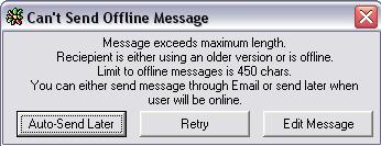 Глюк в том, что почти всем юзерам в контакит-листе не отправляются мессаги больше 450 знаков, даже если они висят в онлайне. Никто не знает, что енто за такое?