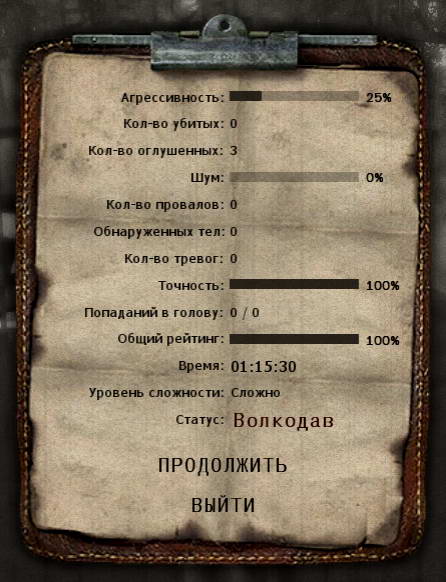 Поздравьте меня! Моя задумка осуществлена целиком и полностью. Все 7 миссий завершено на уровне сложности – сложно, с рейтингом – волкодав (доказательства имеются в виде отчета каждой миссии).
