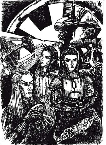 Возможно, за попытку "подселить" эльфов в благородную компанию имперцев и повстанцев, ситхов, джедаев и прочих мне следует задать хорошую взбучку. Посему не стесняйтесь - комментируйте, критикуйте, ругайте... Только не расстреливайте без военного трибунала. ![]() ПРАВО ВЫБОРА Глава 1 Маленький кораблик несся по гиперпространству как бешеный конь. Синие всполохи плясали на пыльной обшивке, отражались от черного фонаря кабины., окутывали кораблик, словно жаждали увлечь его в бездонные глубины гиперкосмоса. Наблюдатель со стороны, если бы он был, мог бы подумать, что пилот занимается чем угодно, только не управлением своего маленького кораблика. В принципе, так оно и было. Если бы не маленький астродройд в специальном гнезде справа от кабины, корректировавший траекторию полета и недававший кораблю сбиться с курса, он давно бы потерялся в этих коварных «водах». Пилот же, паренек лет пятнадцати, в скромной, когда-то белой тунике и таких же штанах, находился в полуобморочном состоянии. Ремни безопасности удерживали его безвольное тело в противоперегрузочном кресле. Приборная доска искрилась всеми цветами радуги как Корускант ночью, кабину то и дело оглашал очередной тревожный сигнал. Астродройд слал панические послания одно за другим, пытаясь привлечь внимание пилота. Безрезультатно. Серые глаза смотрят безучастно, на щеке виден след высохшей слезы, лицо – ужасная маска всепоглощающей боли и муки. Паренек был в сознании, но не реагировал на происходившее вокруг – он полностью ушел в себя, затворился в своей скорлупе вместе со своей болью и корчился в судорогах. Два аккуратных зеленых холмика, поросших белыми цветами-звездочками... Две каменные пластины с выгравированными серебром буквами... Буквы складываются в слоги, слоги – в слова, слова – в имена... Имена, знакомые до боли, которые он хранил глубоко в сердце, которые шептал перед сном, которые столько лет были путеводными звездами... За именами скрывались лица, родные и до боли любимые... «Учителя, как вы могли?..» Всплеск ненависти. «Они обманули тебя! Отомсти!»... Нет, ненависть ведет на Темную Сторону... Родители никогда бы не одобрили этого... «Ами, атя, вы же обещали.. обещали быть со мной, обещали не оставлять...» Опять два холмика, каменная ограда, рядом с ней сгорбившийся под тяжестью лет человек в холщовых штанах, рубахе, подвязанной плетенным пояском ручной работы, в кожаных сандалях на босу ногу... «Вот уж с месяц будет, как их нет... Мы сообщили на Оззус, думали, ты прилетишь... Получили от твоих учителей послание с соболезнованием...» Слезятся близорукие глаза, и непонятно отчего: от солнца или от горя... Он не приехал. Потому что никто в Храме не сказал ни слова. Он чувствовал беду, но ему не поверили... «Они до самого конца говорили о тебе, Кирие... Так тобой гордились...» Вновь сознание застлала кровавая пелена ненависти. «Отомстить! Отомстить всем!»... «Нет, так нельзя... Я не поддамся зову Темной Стороны! Я – Джедай!»... «Ты – глупый, слабый падаван – отвечает из холодной черной бездны жуткий голос – Ты не смог даже прилететь на похороны родителей... Ты позволил, чтобы они разорвали Связь – самое святое, что есть у этолийцев, и все-равно цепляешься за них! Порви оковы, высвободи свое сознание! Погрузись во Тьму и возьми ее Силу – они не смогут с тобой сравниться! Отомсти за надругательство над со
