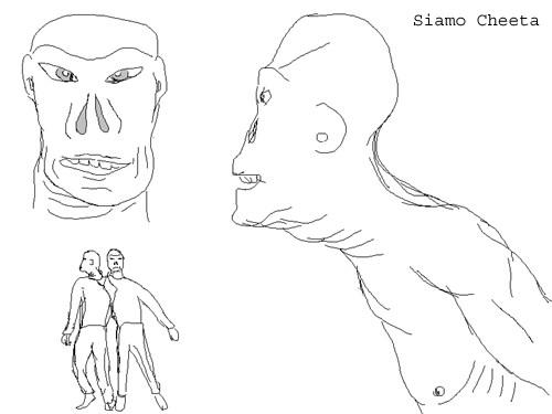 Группа монстров под общим названием Сиамо (Siamo). Объединяет в себя монстров трех видов: Сиамо Лео (Siamo Leo), Сиамо Чийта (Siamo Cheeta) и Сиамо Манил (Siamo Maneel). На самом деле это слипшиеся тела человекоподобных существ, коих в условиях радиоактивной зоны может родиться немало. Причина того, что я предоставляю не одного монстра, а группу, такова, что по-моему мнению мое «детище» интересно именно во взаимодействии друг с другом, а по отдельности выглядели бы намного бледнее. К тому же у них общее происхождение и повадки, несмотря на то, что внешне отличаются сильно.