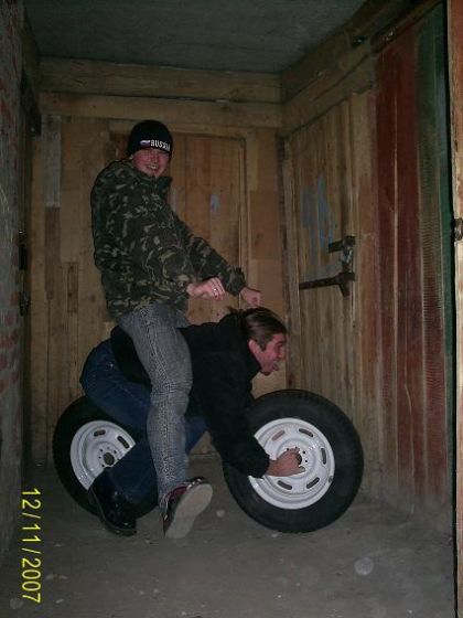Докладываю. 18 скр, 3 динамо-генератора.))) 2 передние(было, на фото уже нет) и задний фонарь (гыгы тащусь от них). Чтоб не летело гамно, брызговики из старого заднего коврика жигулей))